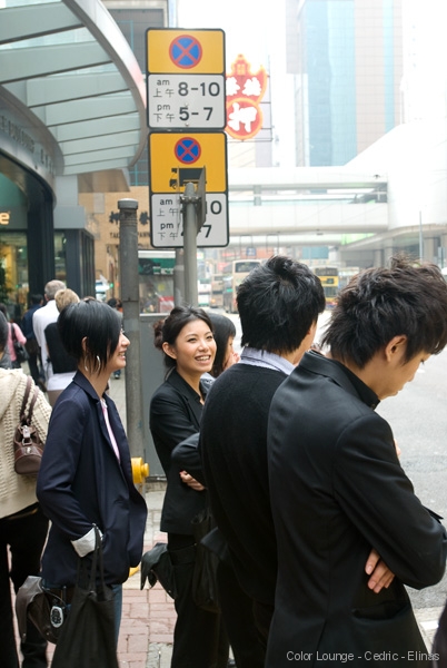 Le ferry, de jour, à un autre aspect. Les vieilles machine sont bien entretenues et ils donnent un caractère authentique au paysage. Ils ne manquent plus que les jonques mais elles doivent être à un autre endroit. À nouveau, en ce jour, en pleine journée, l’idée des niveaux aperçus hier se confirme. Beaucoup plus animée, on reconnaît la capitale financière avec ses banquiers. Les lignes qui montent jusqu’au ciel poussent à prendre des photos debout, verticales. Si proches, il faut se tordre le cou pour voir les sommets des constructions. Les tramways vont et viennent. Ils ressemblent à de vieux jouets métalliques. Sur les portions courbées des rails, les roues émettent une plainte attachante qui montent en écho le long des immeubles. Les verts sont les plus sympathiques car les plus pittoresques. Les autres sont trop recouverts de publicités.