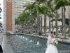 J’observe la météo sur le net juste après le réveil ce qui n’est pas sans m’inquiéter: de la pluie est prévue pour aujourd’hui, des orages pour samedi ou dimanche… J’ai rarement eu une météo aussi pourrie pendant un voyage. Ce n’est guère réjouissant. En espérant que le temps sera plus clément en début de semaine prochaine, nous planifions la journée à Macao ou la montée du mont Victoria à ce moment-là. Nous décidons donc de retourner sur l’île de Hong Kong pour la voir de jour, pour utiliser le plus long tapis roulant du monde, pour errer dans les rues de Central et Causeway bay. Déjà quelques repères sont en place pour aller vers les ferries, nous prenons les raccourcis. Sur la promenade, les immeubles sont encore plus dans une brume épaisse et cotonneuse. Nous sommes assez pessimistes.