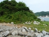 Peu de temps après être redescendus, au nord de l’île, nous apercevons une plage sympa où nous nous rendons. Assez longue, elle permet de se promener et de s’amuser avec les rouleaux qui nous éclaboussent. Même si la mer est assez froide, l’excitation des vagues nous le fait rapidement oublier. À l’autre bout – vers le sud -, se situe une petite île avec une porte shinto (y a-t-il un temple?) par laquelle on accède via un chenal peu profond. Là, des enfants jouent, un homme observe les poissons derrière son masque et une famille cherche des coquillages. L’endroit est très tranquille, tout comme la plage qui est en fin de compte assez peu fréquentée.