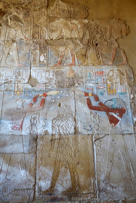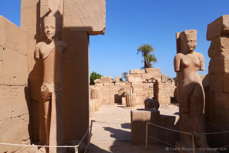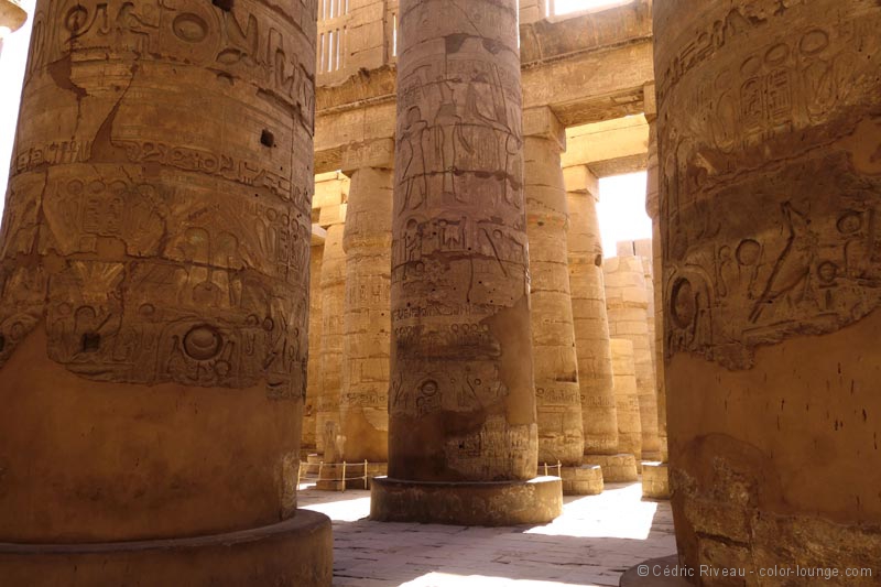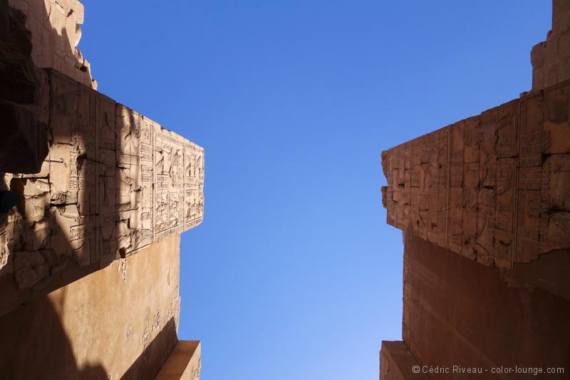 Ce qui succède n’est pas en reste avec la salle des fêtes aux couleurs saisissantes qui inondent mes yeux émerveillés, les trois chapelles des barques, le temple de Ramsès III ou encore la salle du jardin botanique aux murs qui recensent la faune et la flore de l’époque… Ce que je découvre dans ce complexe religieux est sans égal… Je n’arrive pas à le quitter.