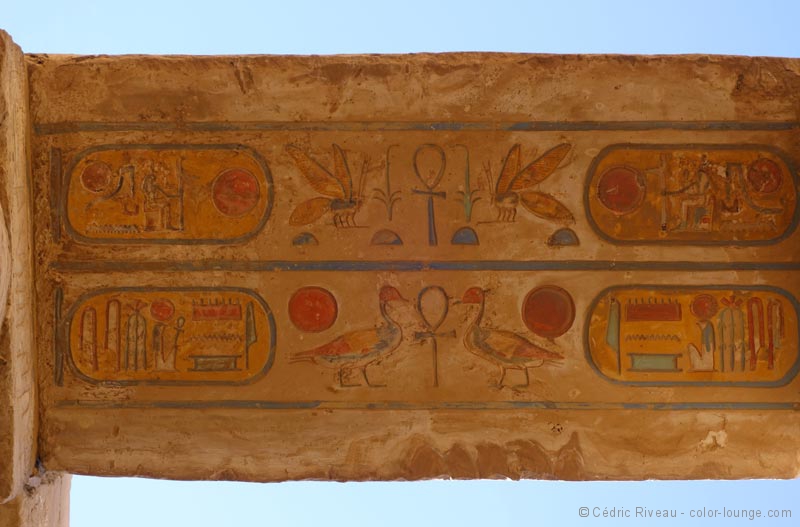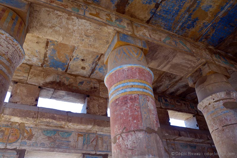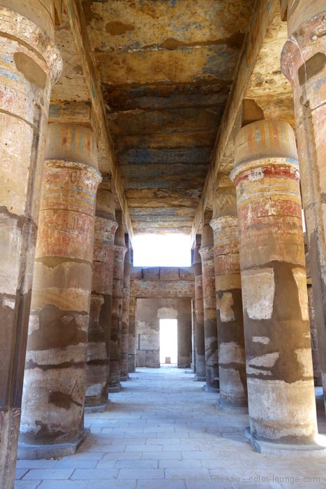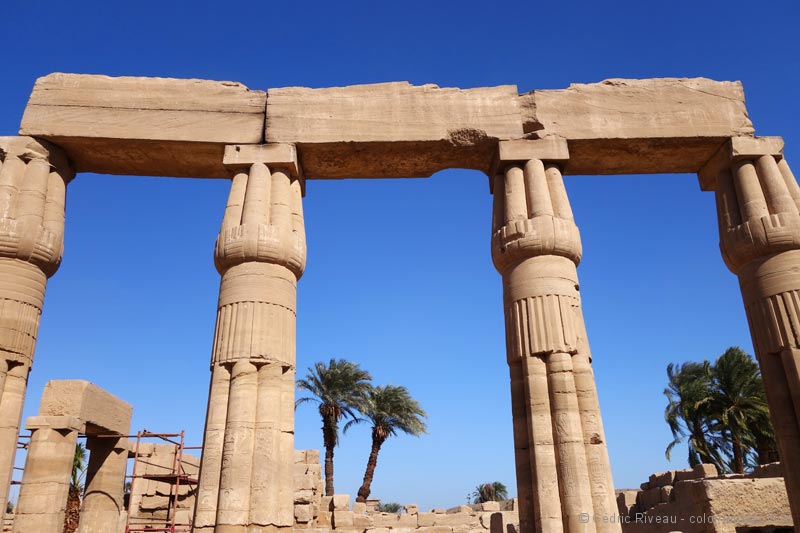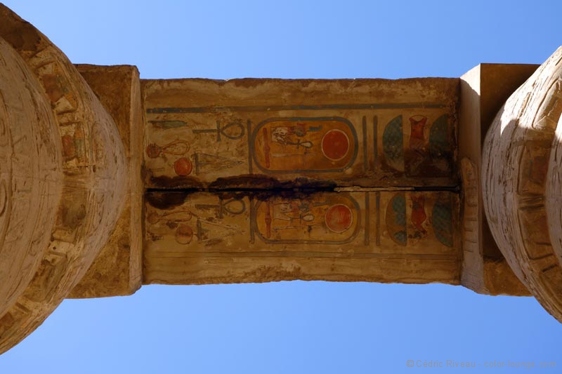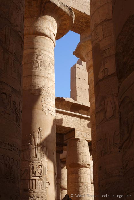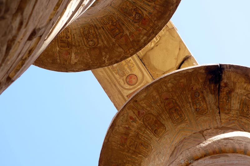 J’hallucine face à cette magie démesurée, je rêve devant la beauté architecturale bâtie devant moi. Qu’est-ce que cela devait être quand tout était debout et coloré ? Les couleurs justement que j’ai l’impression de voir pour la première fois depuis que je suis arrivé. Des couleurs millénaires et pourtant encore vives. Hussein me parle des fêtes qui avaient lieu en cet endroit et mes yeux brillent d’envie en essayant vaguement d’imaginer ce que cela pouvait donner. Il faudrait que je redemande à Cecil B. DeMille, à Howard Hawks ou à Joseph L. Mankiewicz pour voir leurs reconstitutions mais on doit être en-deçà de la vérité.