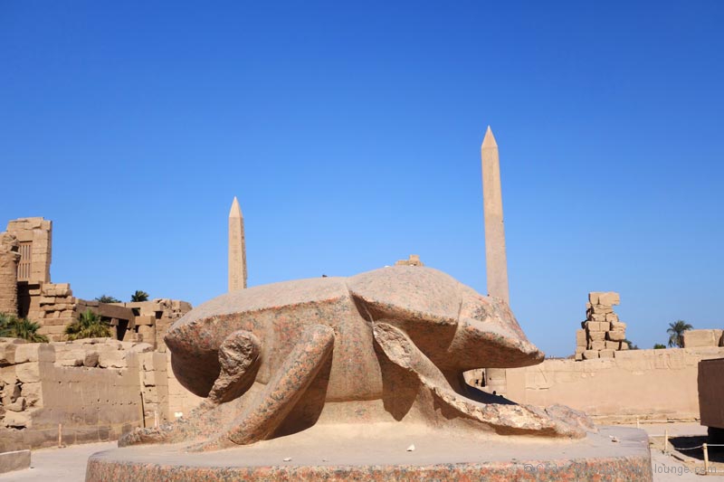 Je retrouve mon chauffeur à 8h15 et nous partons chercher Hussein – mon guide – que j’ai rencontré rapidement la veille. Il nous attend au bord de la route, en bas de chez lui et nous nous rendons sur le complexe de Karnak. C’est la seule visite de la journée car j’ai l’intention de bien en profiter. Il faut dire qu’il fait 250 000m2… Soyons honnêtes, on ne peut en visiter qu’une partie qui fait 500 mètres de long sur 100 de large… L’endroit a été modifié, a subi des ajouts sur 2000 ans et de nombreux pharaons y ont fait poser leur marque : Hatchepsout, Thoutmosis III, Ramsès II, Ramsès III, Amenhotep III, Ptolémée III et j’en oublie !