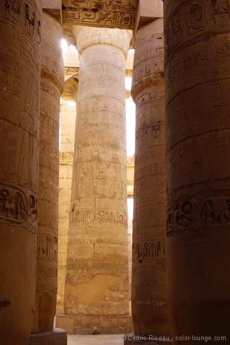 Nous – enfin Hussein m’attend la plupart du temps – restons 5 heures au total. Je suis le seul touriste a en profiter ainsi, à revenir sur mes pas, à me décrocher les vertèbres cervicales devant ces centaines de colonnes. Mon amour pour ces dernières trouve son climax ce jour-là. Même aujourd’hui, quatre mois plus tard, je ne m’en suis pas encore remis. Depuis les pyramides deux jours plus tôt, le temple d’Amon la veille, ces cinq heures dans Karnak sont un enchantement gravé à jamais sur ma rétine.