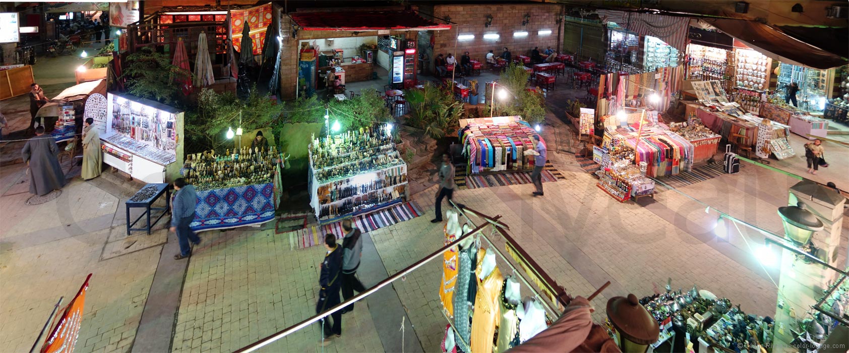Ils me déposent ensuite dans le centre et je traverse le souk pour aller chez Jamboree qui se trouve sur une petite place. Je suis absolument seul ! Le seul client de la journée ! Je n’en reviens pas. Où sont les touristes ? Le patron et le serveur ne veulent plus me laisser partir. Je suis accueilli comme un chef d’état. Sauf qu’avec mon appétit d’oiseau, je ne commande pas grand chose. En plus, ils me servent des portions pas possibles, m’offrent un plat supplémentaire pour me remercier d’être venu. Je suis très touché mais aussi très embêté de ne pouvoir tout finir… La terrasse permet d’avoir une vue sur la place et le souk ce qui est bien agréable même si en bas non plus, il n’y a pas beaucoup de monde… La veille, le restaurant n’a eu aucun client… Le personnel est réduit à trois : un serveur, un caissier et le chef qui est aussi le patron. Je discute bien évidemment avec eux et ils me remercient chaudement.