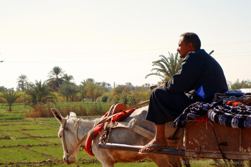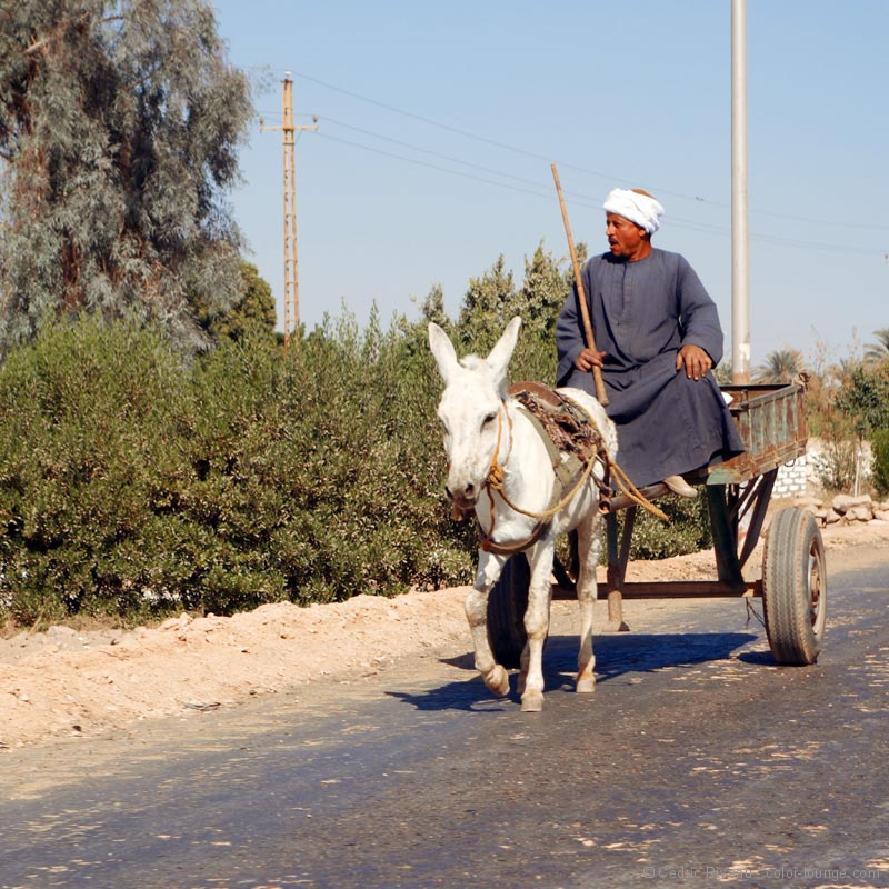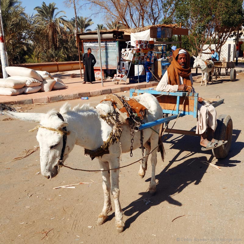 Nous arrivons un peu après de nombreuses calèches installées sur la zone de stationnement et qui ont amené les passagers des bateaux qui descendent ou remontent le Nil. Hussein m’affirme qu’ils seront partis avant que nous sortions. Il connaît parfaitement l’organisation des circuits.