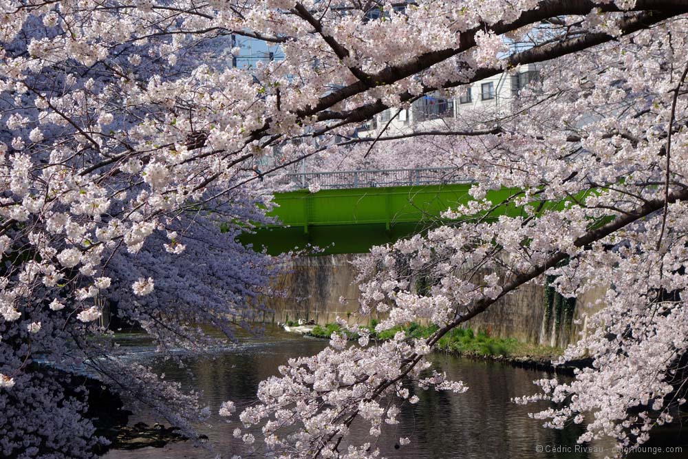La photo avec le pont vert de la rivière Kanda est superbe. Le contraste avec les fleurs, c’est vraiment réussi! Bravo.
